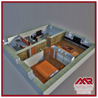 En este caso el trabajo consistió en la toma de datos sobre una vivienda ya existente y la redistribución total de las plantas sin llegar a exigir una gran obra de rehabilitación. También se le hicieron varios renders para que los clientes se pudiesen hacer una idea del resultado final.