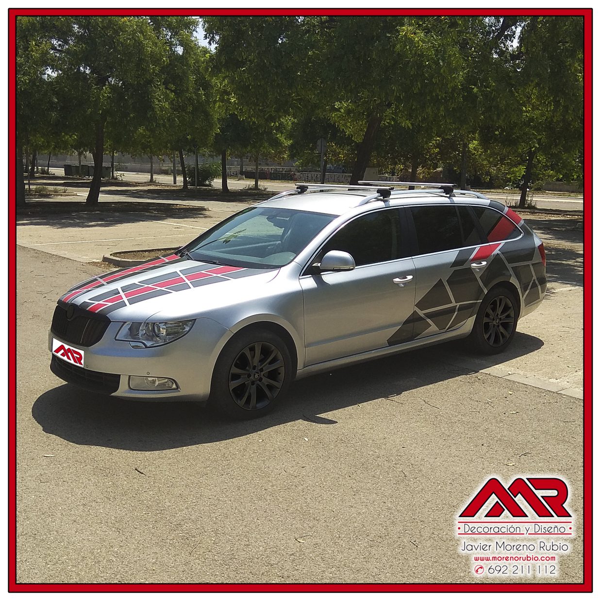 Personalización para un Skoda Octavia Superb, encargo de mi gran amigo de toda la vida. Un trabajo del famoso «wrapping» o decoración en vinilo para vehículos, que hace que le demos a nuestro coche un toque distinto y llamativo, sin pasar por ninguna cabina de pintura y con la ventaja de poder volver atrás y dejar el coche como al principio, con sólo quitar el vinilo aplicado.