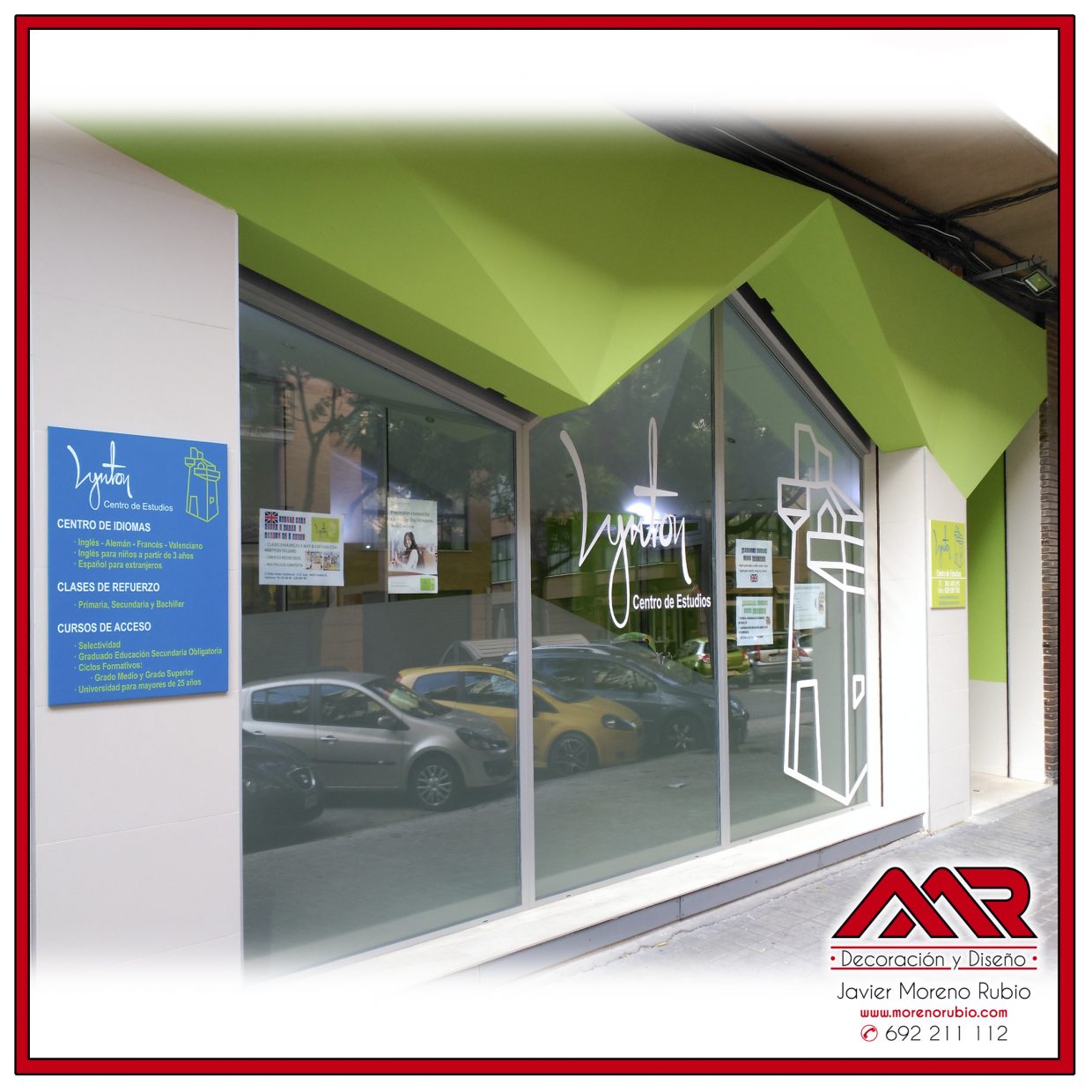 Encargo del Centro de Estudios Lynton para la colocación de vinilo al ácido, comúnmente conocido como vinilo hielo, en todos los vidrios de sus instalaciones para darle privacidad a las estancias, pero sin perder luminosidad.