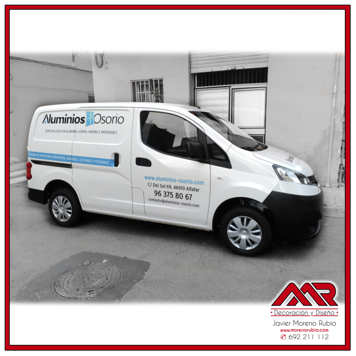 Diseño y rotulación para la empresa Aluminios Osorio. Un resultado sencillo pero que llama mucho la atención cuando la ves circulando por las carreteras, que es la finalidad más importante cuando un cliente nos encarga la rotulación de cualquier vehículo, puesto que es una oportunidad para hacer de un vehículo una publicidad móvil y gratuita de una marca.